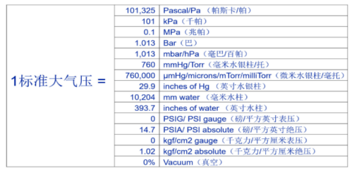 我國法定壓力單位為帕斯卡(簡稱帕),符號為Pa,我國常用非法定壓力單位為巴、亳巴、托、標(biāo)準(zhǔn)大氣壓、工程大氣壓、毫米汞柱等。壓力單位換算關(guān)系如下: