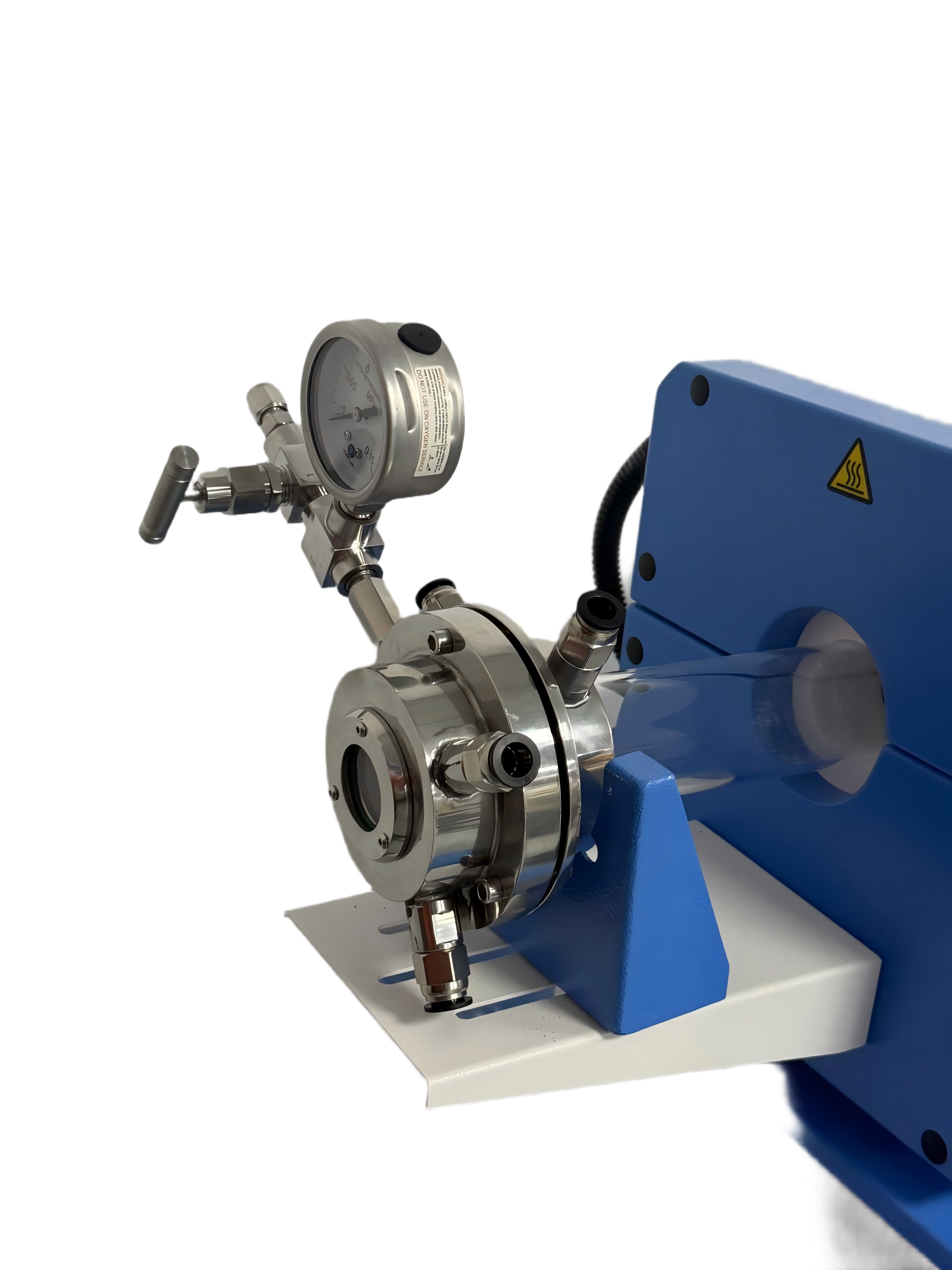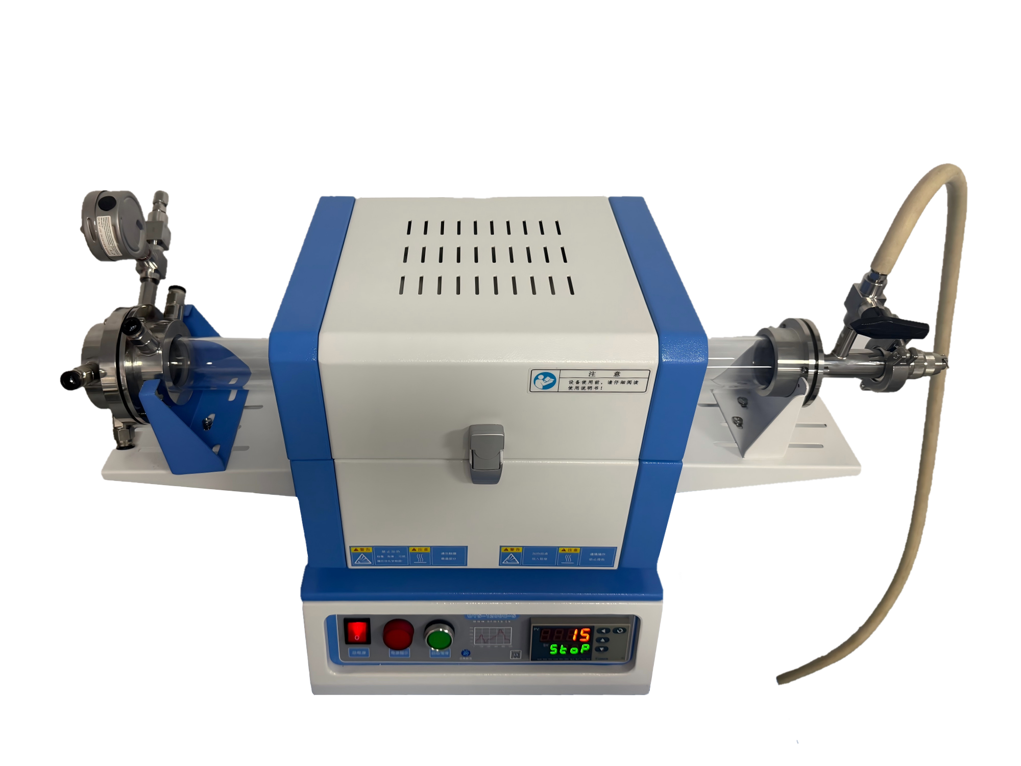 產品概述:一款小型管式爐,其最高工作溫度為1200℃,額定功率為1.3KW。爐管可配置為1"或2"的高純石英爐管爐管兩端已安裝一對不銹鋼法蘭(法蘭上已安裝機械壓力表、不銹鋼截止閥)。此款設備允許樣品在真空和氣體保護下進行燒結。準確溫控系統包含了50段升溫和降溫曲線設置,其控溫精度達到+/-1℃